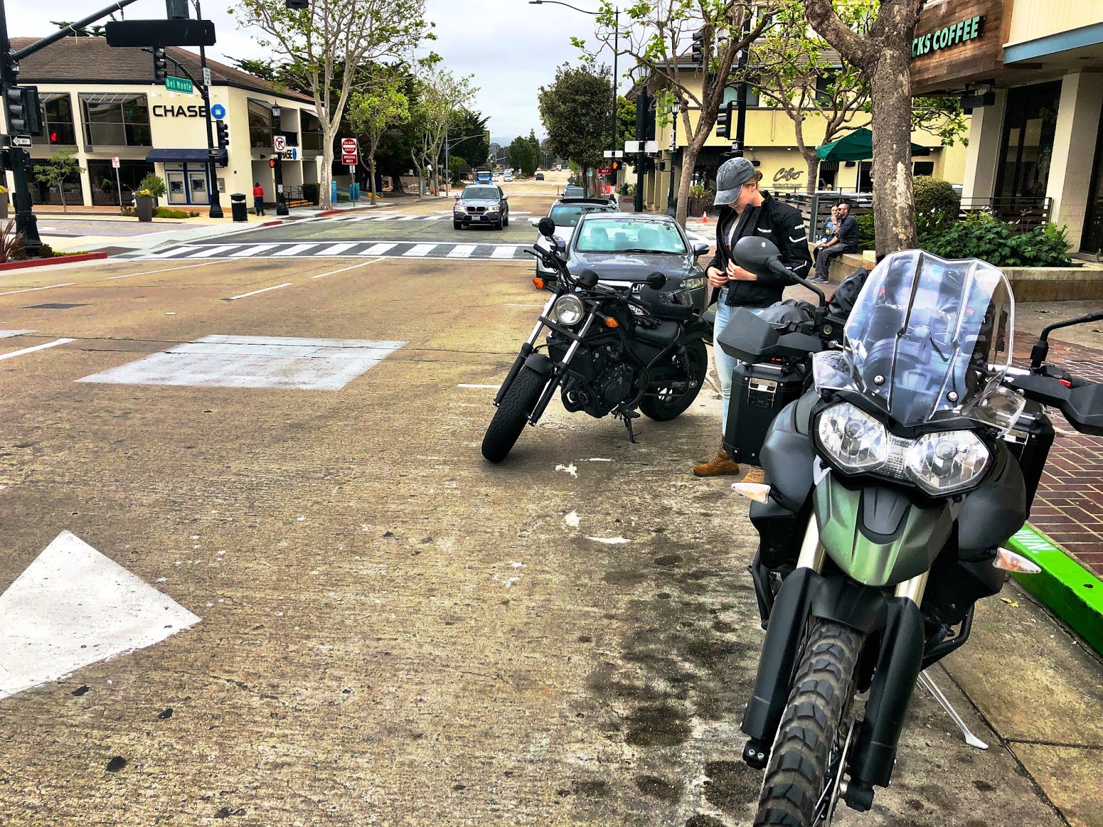 Friday afternoon Addie and I shopped for a good motorcycle riding jacket and helmet in anticipation of her reaching her goal since BCT to acquire a motorcycle and start her journey through displacements. We talked about a half dozen different bikes, including a Tiger 800XC, but she kept coming back to the Honda 500X, but the Powersports shop in Monterey didn’t have one. We got a tip that the Powersports shop in Hollister had one, and planned to ride there, two-up Saturday morning.
