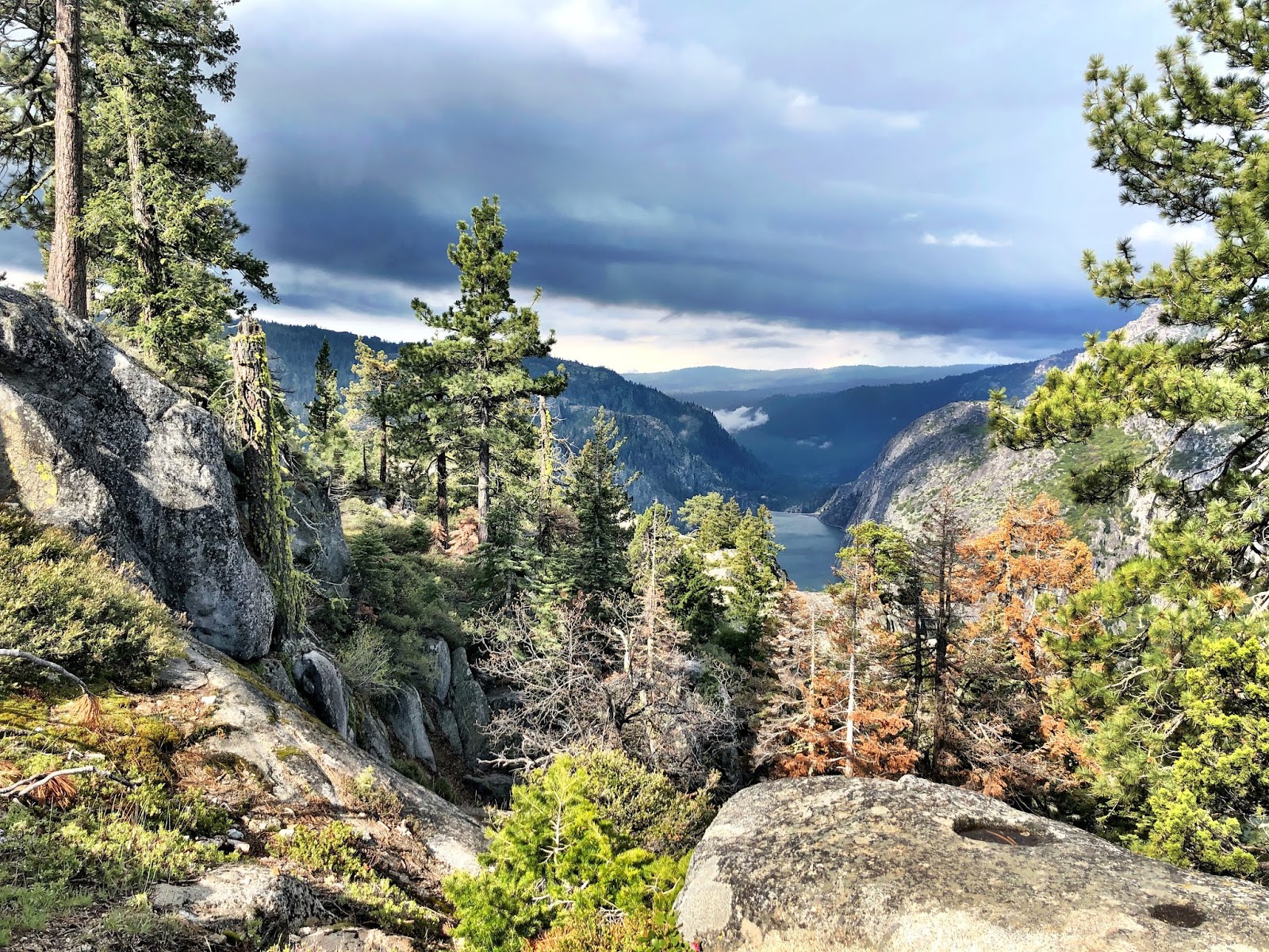 And that would’ve been great had the thunder bumpers been rolling in from the west. I mounted 108 toward Sonora Summit, northeast, right through the middle of the storm. I got nature’s full effect, from dense fog on the western approach, turning to pouring rain at Pinecrest, hail at Bumble Bee and sunshine at the Donnell Vista.