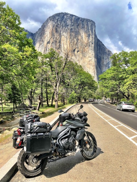 From Seaside I set out north west on 1, picked up 156 to 152 over Pacheco Pass and across the Valley where Google Maps deposited me on Avenue 20.5 off of the 99. It’s as if Google’s algorithms picked up on the idea that I was after curvy, abandoned routes because as the road turned into Raymond Road, I was on an E-ticket ride all the way to Coarsegold. I stopped for lunch and gas and moved onto 41, delivering me to Yosemite Valley. What a ride.