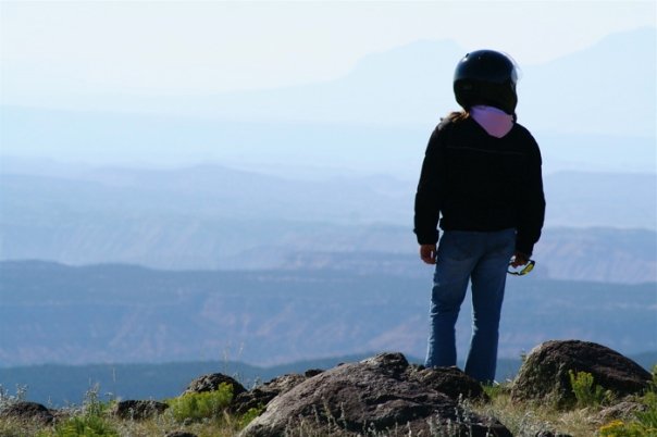 Her equestrian training kicked in. She got back on the Tiger and we rode back to asphalt where we found a spot to take a moment and collect ourselves and to better assess the Tiger. We cut an interview about the ride and it was clear during our conversation that she wasn’t up to riding the hour and half back to Bountiful. The Tiger checked out road worthy except for a smashed turn signal, so I parked it and Addie and I rode two-up on the Explorer back to Bountiful.
