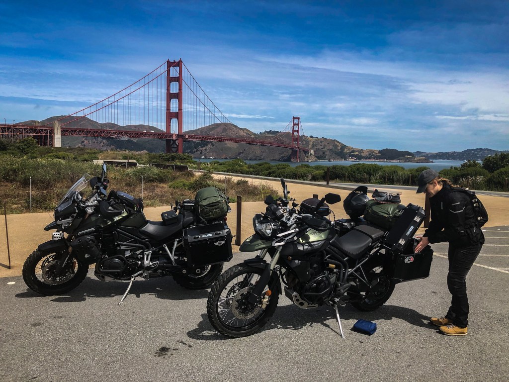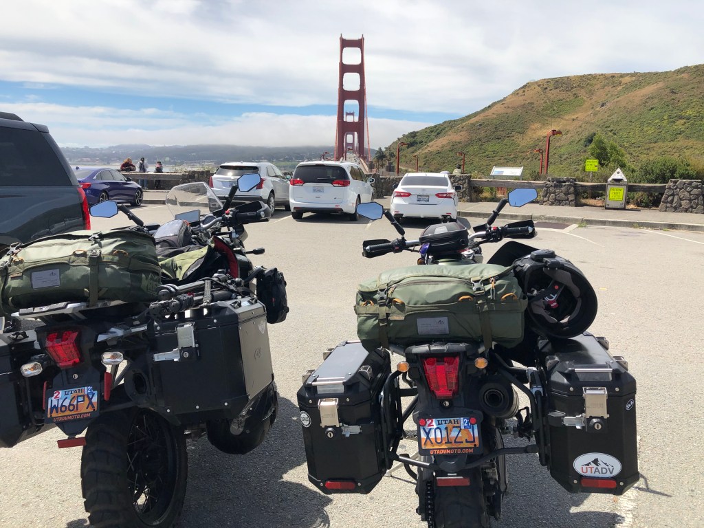 We stopped for breakfast in Half Moon Bay and made our way to The City, being careful to dodge its civil unrest and attempt a short detoured route to the Golden Gate Bridge. Which I failed. I got us lost somewhere near Twin Peaks. Time for the Zumo navigation device which got us to the shuttered Golden Gate Visitors’ Center, sensing a pattern here, where we motored on to Battery East Park giving us a great view of my most favorite structure in the world.