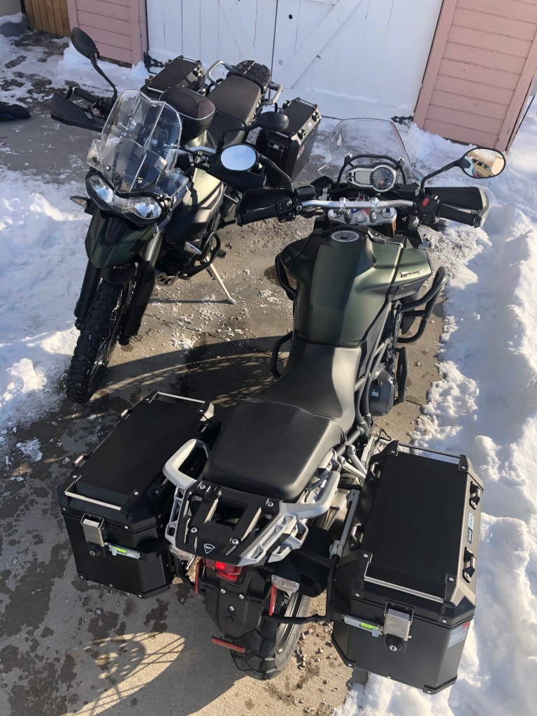The more we talked about potential off-road travel on this journey it became clear the Rebel might be out of its element, so we determined the Tiger would be her ride and I would acquire a second motorcycle, a Triumph Tiger Explorer 1200Xc, and not just any Explorer, I wanted to find one that matched the color and trim level of the 800 and after a bit of search, I found one in Florida, bought it and had shipped to Bountiful to start its prep.