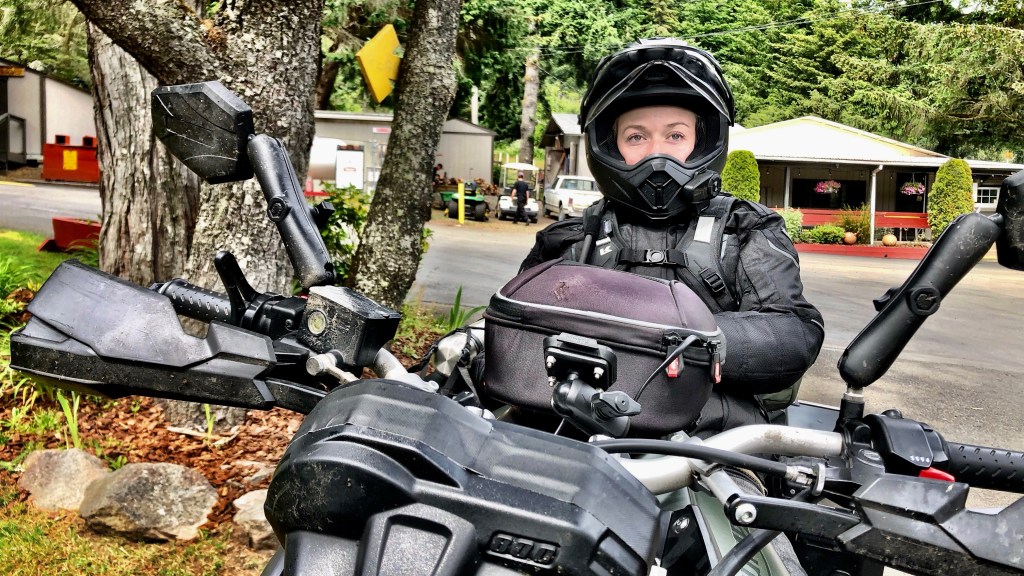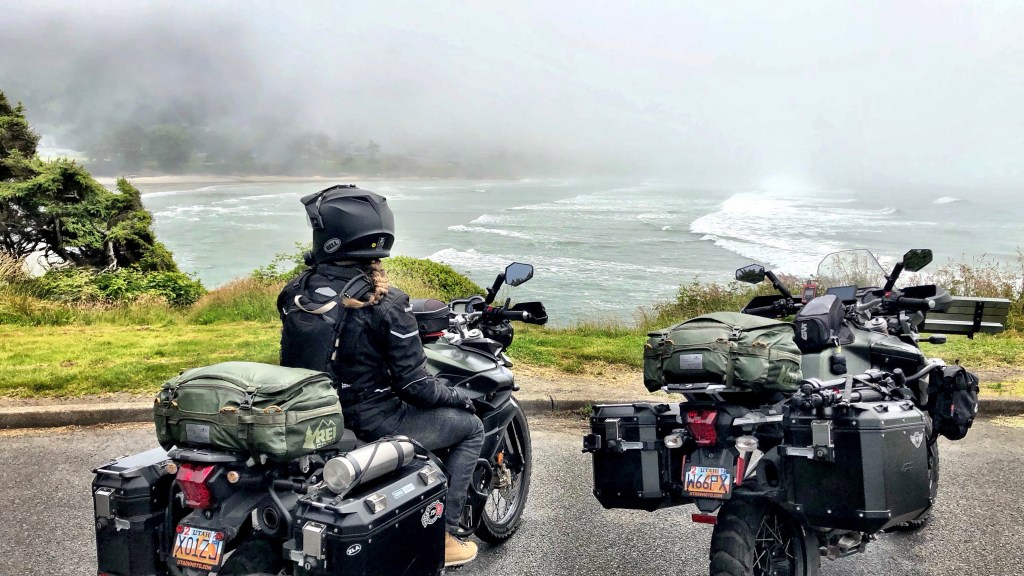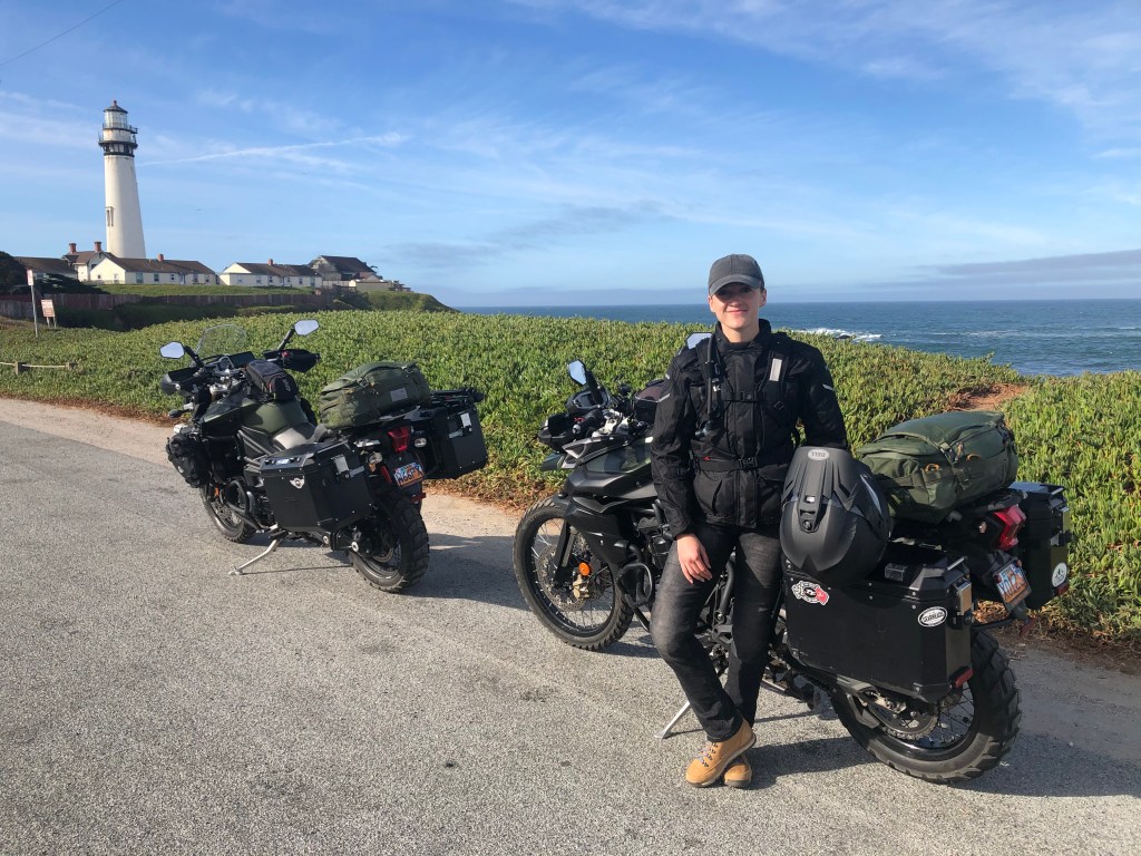 “I’ve watched this woman hunker down and hug her tank through crosswinds that rattle any hardened ADV rider’s nerves, and stand on her pegs letting her 500lb motorcycle float beneath her in the worst road conditions I’ve ever ridden – paved or unpacked, and lean so far into corners along the pacific coast defying physics and trusting the giant gyroscopes that are her wheels. And I heard her sneeze at lest a dozen times per mile while she fought off the worst allergy attacks she’s ever had. A motorcycle amplifies everything and doesn’t care about your size or gender, but she took this machine and lead it past thousands of miles of pavement without complaint and with grace uncommon.”