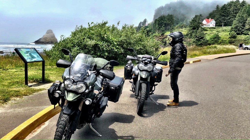 Inviting her to come along also meant evaluating our current rides; hers was a Honda Rebel 500cc and mine, a Triumph Tiger 800Xc.