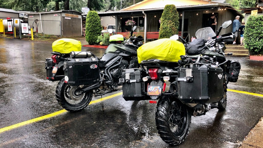We were prepared with rain gear for our packs and tank bags and convertible riding jackets and pants that keep us dry.