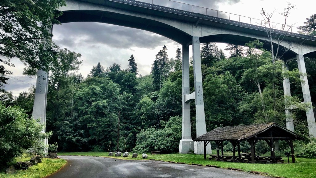 This is a beautiful campground tucked away into a canyon nestled in an urban sprawl between Spokane and Tacoma. There were maybe a dozen sites, each occupied which made me all the more grateful to have secured a reservation the day before. There’s a bridge that spans the expanse of the canyon and is somewhat of a gateway between the campsites and the sound.