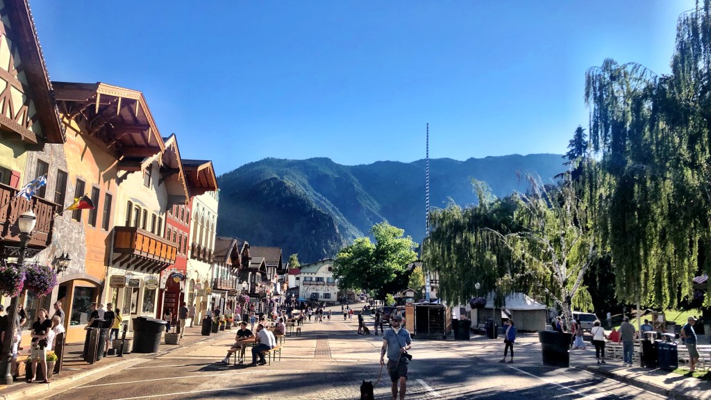 The story goes that when lumber business dried up here thanks to a certain spotted owl the residents did a makeover of the town and turned it into a tourist attraction at which they excelled. Doesn’t hurt that it’s nestled in a spectacular canyon south of Lake Wenatchee.