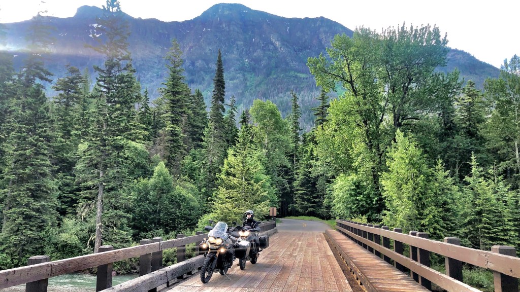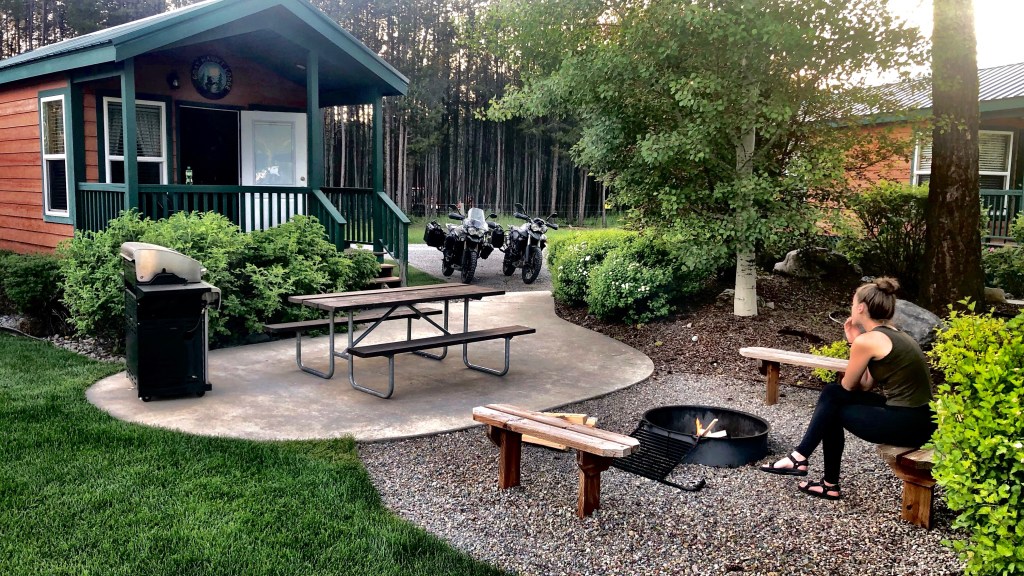 We had roughly fifty miles to go to get to West Glacier. The weather backed off a bit rounding Doris Mountain into the valley that takes you to the park entrance. The plan for that evening was to camp in the park and relax, but COVID-19 restrictions not withstanding, the park was full. A quick look on the Zumo and I found and booked a spot at the West Glacier KOA Resort, and given how we were both feeling, the spot was a cozy cabin with indoor plumbing, climate control and nice beds. We deserved at least as much.